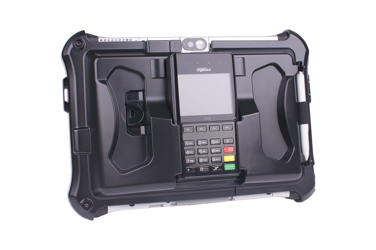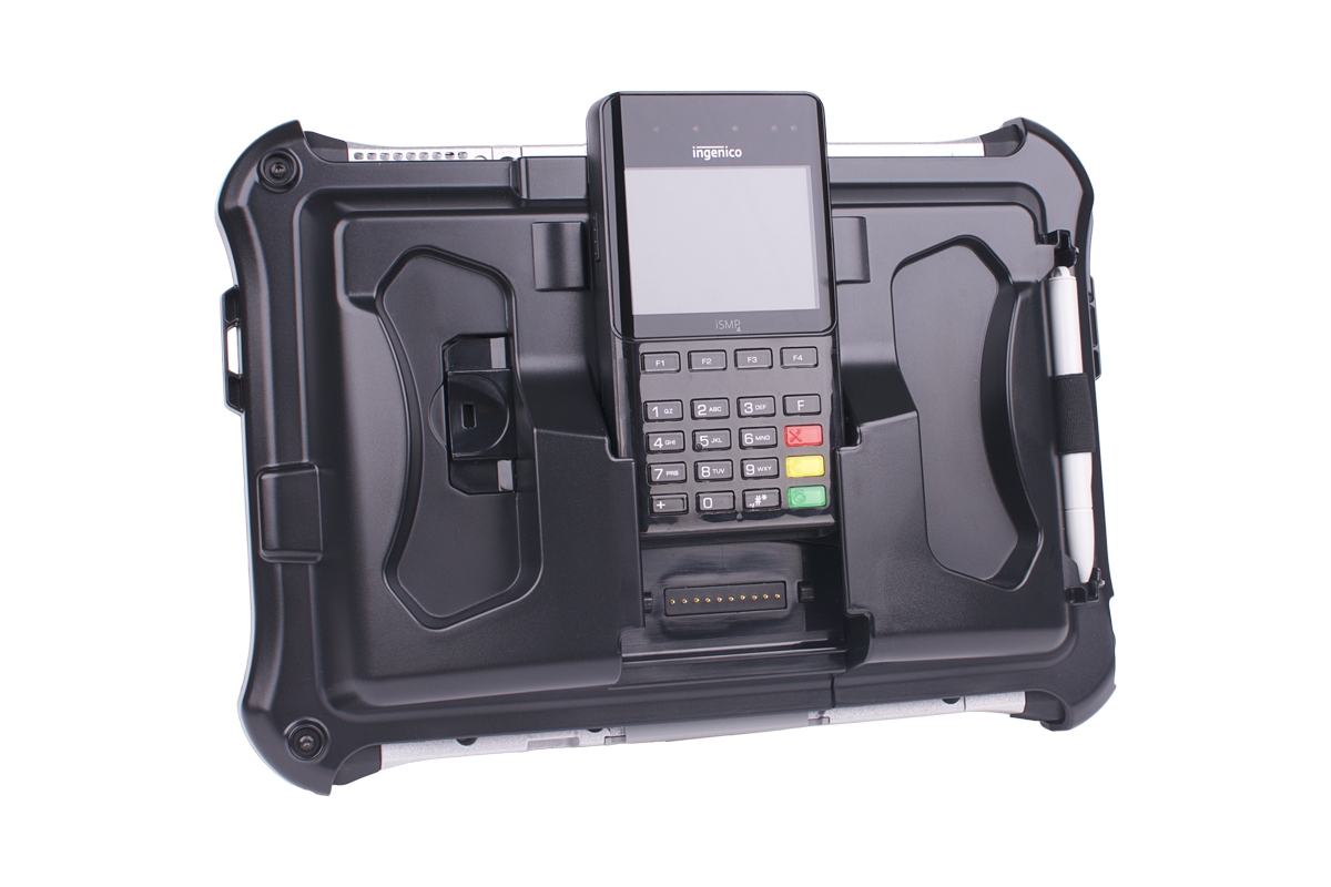 Ingenico iSMP4 ve Verifone e355 ödeme cihazlarını yerleştirmek için tasarlanmış özel TOUGHBOOK G1 muhafazası (Ingenico ve Verifone cihazları dahil değildir). Muhafaza, G1’deki pil bölümüne kolay erişim sağlamak ve ödeme cihazının kolayca çıkarılabilmesi için tasarlanmıştır. Muhafaza,entegre ekran kalemi tutucuya ve omuz askı teçhizatına da sahiptir. Verifone e355 cihazı, Bluetooth ile bağlanıp ayrıca şarj edilirken ,muhafazaya sorunsuz bir şekilde yerleştirilen Ingenico ödeme cihazı iSMP4’ün güvenli bir şekilde eşleştirmesi ve şarj edilmesine olanak tanımak amacıyla tablete USB üzerinden bağlanır.